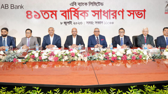 এ বছর এবি ব্যাংক সফল ব্যাংকিং কার্যক্রমের ৪১ বছর পূর্ণ করেছে। সভায় ব্যাংকের এই চার দশকের সঙ্গী সব শেয়ারহোল্ডার, গ্রাহক, পৃষ্ঠপোষক, নীতিনির্ধারক এবং শুভানুধ্যায়ীদের প্রতি কৃতজ্ঞতা প্রকাশ করা হয়।