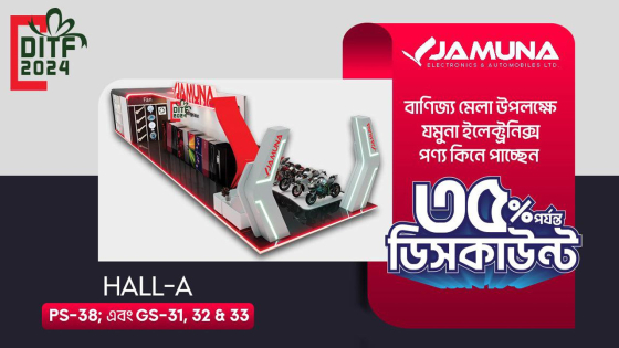 প্রতিবারের মতো ঢাকা আন্তর্জাতিক বাণিজ্য মেলায় অংশ নিয়েছে দেশের স্বনামধন্য শিল্প প্রতিষ্ঠান যমুনা গ্রুপের অঙ্গ প্রতিষ্ঠান যমুনা ইলেক্ট্রনিক্স অ্যান্ড অটোমোবাইলস লিমিটেড। মেলায় যমুনা পণ্যের ক্রেতাদের জন্য এই প্রতিষ্ঠানটি নিয়ে এসেছে অবিশ্বাস্য ৩৫% পর্যন্ত ডিসকাউন্ট অফার।