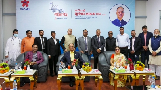 রিমার্কের ফ্যাক্টরিতে মানসম্মত কর্মপরিবেশ, অত্যাধুনিক প্রযুক্তির ব্যবহার এবং দেশেই বিশ্বমানের পণ্য উৎপাদনের সক্ষমতা দেখে এর ভূয়সী প্রশংসা করেন মন্ত্রী।