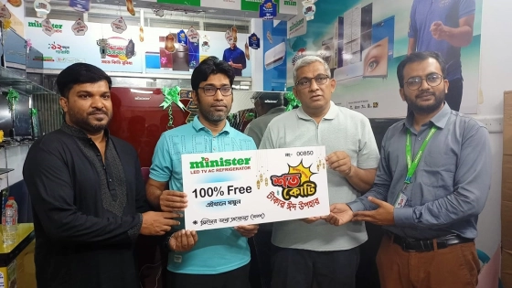 ফ্রি রেফ্রিজারেটরটি গ্রাহককে তুলে দেন মিনিস্টার গ্রুপের সম্মানিত ডিরেক্টর মাহমুদুর রহমান খান ও ডিএম নাজমুল হোসেন অনিক। এ সময় প্রতিষ্ঠানের অন্যান্য কর্মকর্তা ও বিভিন্ন শো-রুমের ম্যানেজাররা উপস্থিত ছিলেন।
