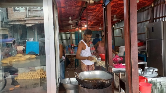 প্রতিদিন সকাল থেকে দোকানের চারপাশে ক্রেতাদের উপচেপড়া ভিড় শুরু হয়। কেউ বলেন, ‘আমাকে ৮টা পুরি দাও’, কেউ বলেন, ‘আমাকে ১০টা পুরি পার্সেল করে দাও’। ‘দিচ্ছি ‘দিচ্ছি’ বলতে বলতে ক্রেতাদের সামনে দুই হাত আর মুখ চলে ৫৪ বছর বয়সি জুলহাজ হোসেনের। ডালপুরি বিক্রি করেই চলে তার ১৩ সদস্যের সংসার।