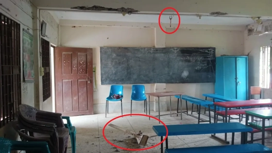বরগুনায় দ্বিতীয় শ্রেণির শিশু শিক্ষার্থীদের ক্লাস চলাকালে ভবনের ছাদের বিম ভেঙে ফ্যান ছিড়ে শিক্ষক আবু বকর সিদ্দিক আহত হয়েছেন। অল্পের জন্য রক্ষা পেয়েছে ওই শ্রেণিতে থাকা অর্থ শতাধিক শিশু শিক্ষার্থী। ঘটনার সময় শিশু শিক্ষার্থীরা চিৎকার দিয়ে ক্লাস থেকে দৌড়ে বের হয়ে যায়।
