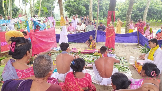 বৃহস্পতিবার (১১ জুলাই) পঞ্চগড়ের বোদা উপজেলার পাঁচপীর ইউনিয়নের মীরগঞ্জ এলাকায় এ বিয়ের আয়োজন করা হয়। এতে আশেপাশের প্রায় শতাধিক পরিবার অংশ নেন।