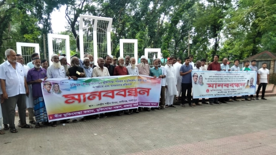 বীর মুক্তিযোদ্ধা ও মুক্তিযোদ্ধা পরিবারের কোটা নিয়ে অপপ্রচার ও অবমাননার প্রতিবাদে মানববন্ধন করেছেন মুক্তিযোদ্ধা ও মুক্তিযোদ্ধা পরিবারের সন্তানরা।