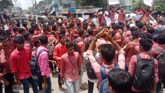 মঙ্গলবার (১৬ জুলাই) বেলা সাড়ে ১২টার দিকে খুলনা মোড়ে অবস্থান নিয়ে সড়ক অবরোধ করেন শিক্ষার্থীরা। অবরোধের ফলে খুলনা রোড মোড়ের তিন সড়কে তীব্র যানজটের সৃষ্টি হয়।