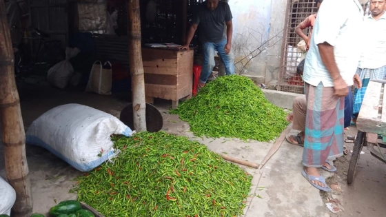 মাত্র একদিনের ব্যবধানে দিনাজপুরের ফুলবাড়ীতে কাঁচা মরিচের দাম কমেছে কেজিতে ৭০ টাকা। আমদানি বৃদ্ধি পাওয়ায় খুচরা বাজারে দাম কমেছে বলে দাবি ব্যবসায়ীদের। শুক্রবার (২৬ জুলাই) সকালে ফুলবাড়ী পৌর এলাকার সবজি বাজার ঘুরে দেখা যায়, হিলি স্থলবন্দর দিয়ে ভারতীয় কাঁচা মরিচের আমদানি হওয়াসহ স্থানীয়ভাবে উৎপাদিত কাঁচা মরিচের আমদানি বৃদ্ধি পাওয়ায় দাম কমে এসেছে। একদিন আগেও কাঁচা মরিচ প্রতিকেজি ২০০ টাকায় বিক্রি হলেও আজ বিক্রি হয়েছে ১৩০ টাকা কেজি দরে। সবজি কিনতে আসা কলেজশিক্ষক এহতেসাম আহম্মদ বলেন, দুইদিন আগেও প্রতি কেজি কাঁচা মরিচ কিনতে হয়েছে ২০০ টাকায়। আজ আবার কেজিতে ৭০ টাকা কমে ১৩০ টাকায় বিক্রি হচ্ছে। এতে অনেকটাই স্বস্তি ফিরেছে। তবে কাঁচা মরিচ প্রতিকেজি ৪০ থেকে ৫০ টাকা হলে সকলের জন্য স্বস্তিদায়ক হয়। খুচরা সবজি বিক্রেতা হারুন উর রশিদ জানান, পাইকারি বাজারে কাঁচা মরিচের দাম কমে আসায় খুচরা বাজারেও দাম কমে এসেছে। একদিন আগেও প্রতিকেজি কাঁচা মরিচ বিক্রি করেছেন ২০০ টাকায়। এখন কমে সেটি বিক্রি করছেন ১৩০ টাকা কেজি দরে। তবে এমন অবস্থা বজায় থাকলে কাঁচা মরিচের দাম আরও কমে আসবে। পাইকারি ব্যবসায়ী আলমগীর হোসেন বলেন, অতি বৃষ্টির জন্য এলাকার মরিচ গাছ মরে যাওয়ায় মরিচের উৎপাদন কম হওয়াসহ ভারতীয় কাঁচা মরিচের আমদানি না থাকায় দাম বেড়েছিল। এখন ভারতীয় কাঁচা মরিচের আমদানি হওয়ার পাশাপাশি স্থানীয়ভাবে উৎপাদিত মরিচের আমদানি বেড়ে যাওয়ায় দাম কিছুটা কমে এসেছে। এ কারণে একদিনের ব্যবধানে প্রতিকেজিতে ৭০ টাকা কমে কাঁচা মরিচ বিক্রি হচ্ছে। আমদানি বৃদ্ধি পেলে দাম আরও কমে আসবে। উপজেলা নির্বাহী কর্মকর্তা মীর মো. আল কামাহ তমাল বলেন, উপজেলা প্রশাসনের পক্ষ থেকে নিয়মিত বাজার মনিটরিং করা হচ্ছে। কেউ অযাচিতভাবে কোনো পণ্যের দাম বৃদ্ধি করলে তার বিরুদ্ধে বিধিমোতাবেক ব্যবস্থা নেওয়া হবে।