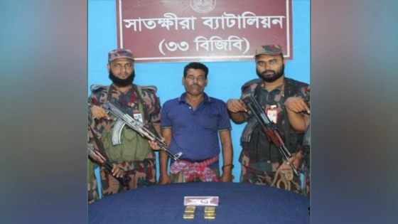 বিজিবি সূত্র জানায়, সোনার একটি বড় চালান সাতক্ষীরার কলারোয়া উপজেলার ভাদিয়ালি সীমান্ত দিয়ে ভারতে পাচার করা হচ্ছে এমন গোপন সংবাদের ভিত্তিতে বিজিবি মাদরা বিওপির হাবিলদার আতাউর রহমানের নেতৃত্বে একটি টহল দলের সদস্যরা সেখানে অবস্থান নেয়। সোমবার সকাল সোয়া ৬টার দিকে ভাদিয়ালি সীমান্তের মেইন পিলারের-১৩ সাব পিলার-৩ এলাকা দিয়ে এক ব্যক্তিকে সীমান্তের দিকে হেঁটে যেতে দেখা যায়। এ সময় বিজিবি সদস্যরা তাকে চ্যালেঞ্জ করে। পরে তার দেহ তল্লাশি করে কোমরে গামছা দিয়ে পেঁচানো অবস্থায় চার টুকরা দেশীয় তেজাবি সোনা উদ্ধার করে।