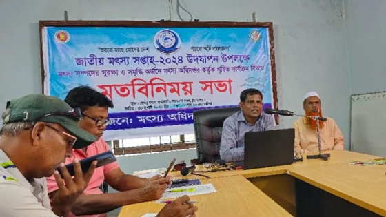 জাতীয় মৎস্য সপ্তাহ উপলক্ষে চুয়াডাঙ্গায় মতবিনিময় সভায় এ তথ্য জানায় জেলা মৎস্য অফিস। চুয়াডাঙ্গা মৎস্য অফিসের উদ্যোগে ৩০ জুলাই থেকে ৫ আগস্ট জাতীয় মৎস্য সপ্তাহ উপলক্ষে স্থানীয় গণমাধ্যম কর্মীদের সঙ্গে মতবিনিময় সভা অনুষ্ঠিত হয়েছে।