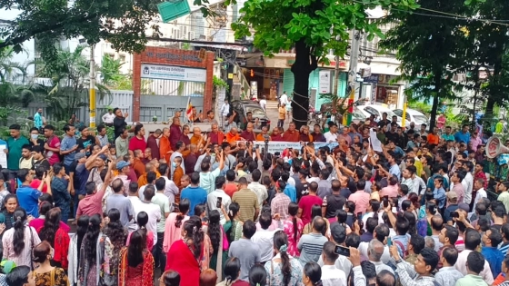 রোববার (১১ আগস্ট) বিকেলে চট্টগ্রাম প্রেস ক্লাব চত্বরে হাজারো বৌদ্ধ ধর্মাবলম্বীরা এই সমাবেশ করেন। সমাবেশ থেকে বৈষম্যবিরোধী ছাত্র-জনতার প্রতি-বৌদ্ধবিহারে হামলা ও শ্মশান দখলের বিচার দাবি করা হয়।