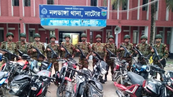 নাটোরের নলডাঙ্গায় লুটপাট করতে ১১টি মোটরসাইকেলে গ্রামবাসীর ওপর আক্রমণের চেষ্টা করে সন্ত্রাসীরা। পরে সেনাবাহিনীর উপস্থিতি টের পেয়ে মোটরসাইকেল ফেলে পালিয়ে যায় তারা।