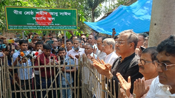 ফখরুল বলেন, আবু সাঈদ তার বুকের রক্ত দিয়ে বাংলাদেশের নতুন ইতিহাস তৈরি করেছে। তার কারণে লাখ লাখ মানুষ জেগে উঠেছে। সেই ভয়ে শেখ হাসিনা ভারতে পালিয়েছে। আমরা হিন্দু, মুসলমান, বৌদ্ধ, খিস্টান সবাই একসঙ্গে যে নতুন স্বাধীনতা পেয়েছি, তাকে সুসংহিত করার জন্য সম্প্রতি সমাবেশ করছি।