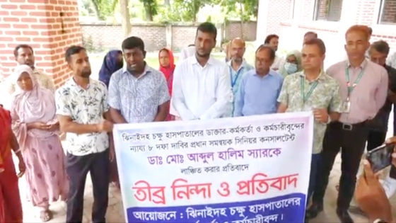শনিবার (১৭ আগস্ট) দুপুরে ঝিনাইদহ চক্ষু হাসপাতাল চত্বরে এ বিক্ষোভ সমাবেশের আয়োজন করা হয়।