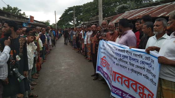 খুলনার কয়রা উপজেলার ৬নং উত্তর বেদকাশি ইউনিয়নের চেয়ারম্যান ও ইউনিয়ন আওয়ামীলীগের সভাপতি সরদার নুরুল ইসলাম কোম্পানির পদত্যাগের দাবিতে বিক্ষোভ মিছিল শেষে মানববন্ধন অনুষ্ঠিত হয়েছে।