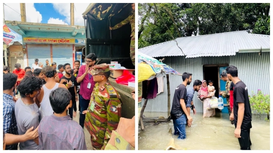 এ সময় বাংলাদেশ সেনাবাহিনীর সদস্যরাও ত্রাণ বিতরণ কার্যক্রমে তাদের সহযোগিতা করেন। এ ছাড়া তারা লজিস্টিক ও মেডিকেল টিমের সাপোর্টও দিয়েছে।