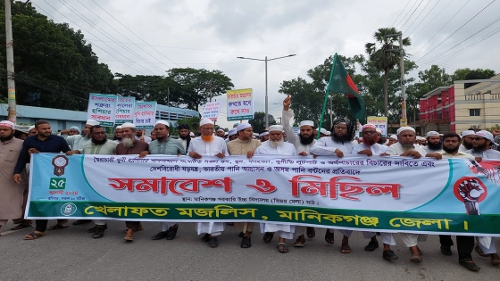 সমাবেশ শেষে বিক্ষোভ মিছিল নিয়ে শহর প্রদক্ষিণ করেন খেলাফতে মজলিসের নেতাকর্মীরা।