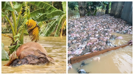 এমনকি একতলা পর্যন্ত পাকা বাড়ি তলিয়ে গেছে পানির নিচে। স্রোতের তোড়ে শত শত মুরগির খামার পুরোপুরি ধ্বংস হয়ে গেছে। এ ক্ষতি পুষিয়ে নিতে অনেক দীর্ঘ সময় লাগবে খামারিদের।