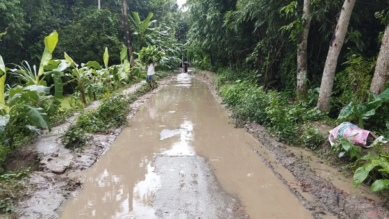 সরেজমিন দেখা যায়, টানা বৃষ্টির কারণে পুরো রাস্তা জলাবদ্ধতায় রূপ নিয়েছে। কোথাও কোথাও হাঁটু পানি। রাস্তার অনেক জায়গা ভেঙে খোয়াও চলে যাচ্ছে। রাস্তায় পানি জমে থাকায় কৃষিপণ্যসহ অন্যান্য মালামাল আনা নেওয়া করতে পারছেন না বলে জানান এলাকাবাসী।