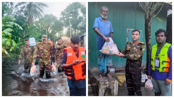 কুমিল্লা মনোহরগঞ্জ উপজেলা লক্ষণপুর ইউনিয়ন বন্যার্তদের মাঝে ত্রাণ বিতরণ করতে গিয়ে বিদ্যুৎস্পর্শে দুই সেনা সদস্য ও নৌকার মাঝি আহত হয়েছেন। পরে হেলিকপ্টারে করে তাদের উদ্ধার করা হয়েছে।