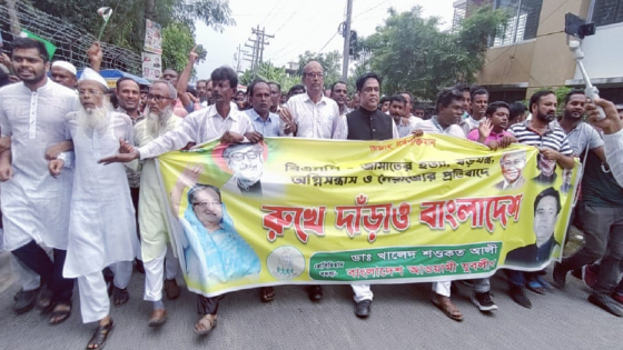 বিএনপি-জামায়াতের ‘হত্যা, ষড়যন্ত্র, অগ্নিসন্ত্রাস ও নৈরাজ্যের প্রতিবাদে’ শরীয়তপুরের নড়িয়া উপজেলায় বিক্ষোভ মিছিল ও পথসভা করেছেন বাংলাদেশ যুবলীগের প্রেসিডিয়াম সদস্য খালেদ শওকত আলী।