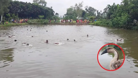 উল্লেখ্য, ৩০ টাকা করে টিকিট কেটে ২০ জনের একটি দল পুকুরে নামে। আয়োজকরা পুকুরে একটি হাঁস ছেড়ে দেয়। পানিতে ডুবে যে হাঁস ধরতে পারবে, সে হাঁসটি পেয়ে যায়।