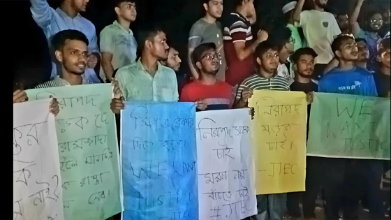 জানা যায়, টেক্সটাইল কলেজের এক শিক্ষার্থী সড়ক দুর্ঘটনায় আহত হলে শেখ কামাল টেক্সটাইল ইঞ্জিনিয়ারিং কলেজের সামনে ব্যানার,ফেস্টুন নিয়ে সড়ক অবরোধ করে স্লোগান দিতে থাকে শিক্ষার্থীরা। এতে ঝিনাইদহ-ঢাকা মহাসড়কে যান চলাচল বন্ধ হয়ে যায়। সড়কের দুপাশে শত শত গাড়ি দাঁড়িয়ে থাকায় যানজটের সৃষ্টি হয়। ভোগান্তিতে পড়ে হাজার হাজার যাত্রী।