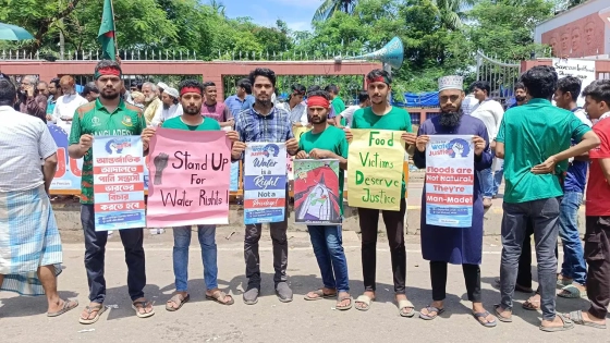 ভারতীয় পানি আগ্রাসনের ফলে ডুবেছে পুরো ফেনী জেলাসহ আশপাশের জেলাগুলো। প্রতিবাদে ‘স্ট্রাইক পর ওয়াটার জাস্টিজ’ কর্মসূচি পালন করেছে ফেনীবাসী। শুক্রবার সকাল ১০টা থেকে ঘণ্টাব্যাপী চলে এ কর্মসূচি। ফেনীর পরশুরাম সীমান্তে বিএসএফ কর্তৃক বাংলাদেশের দিকে বাঁধ কেটে দিয়ে ফেনীসহ আশপাশের জেলা ডুবানোর প্রতিবাদ, বন্যায় ক্ষতিগ্রস্তদের যথাযথ ক্ষতিপূরণ আদায়, পানির ন্যায্য হিস্যা আদায় ও দ্রুত মুছাপুরে ক্লোজার পুনর্নির্মাণসহ ১১ দফা দাবিতে ফেনী শহীদ মিনারে স্ট্রাইক ফর ওয়াটার জাস্টিস কর্মসূচি করেছে বন্যা দুর্গত ফেনীবাসী। কর্মসূচিতে ফেনীর নাগরিক সমাজ এবং পরিবেশ ও জলবায়ু বিশেষজ্ঞরা অংশ নেন।