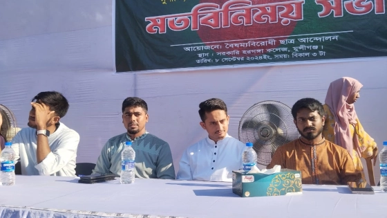 এর আগে বেলা ১১টার দিকে শহরের একটি রেস্টুরেন্টে মুন্সীগঞ্জে বৈষম্যবিরোধী ছাত্র আন্দোলনে নিহত ও আহতদের পরিবারের সদস্য এবং স্বজনদের সঙ্গে মতবিনিময় করে বৈষম্যবিরোধী ছাত্র আন্দোলনের কেন্দ্রীয় সমন্বয়ক দল। এ ছাড়া দুর্নীতি, চাঁদাবাজি ও নির্যাতন রুখতে স্থানীয় আইনশৃঙ্খলা বাহিনী, প্রশাসন ও রাজনৈতিক ব্যক্তিদের সঙ্গে মতবিনিময় করেন তারা।