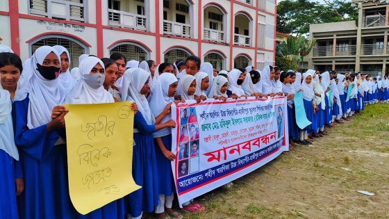 ব্রাহ্মণবাড়িয়ার কসবায় রাতের আঁধারে এক শিক্ষকের ওপর দুবৃর্ত্তদের হামলার প্রতিবাদে মানববন্ধন কর্মসূচি পালন করেছে শিক্ষার্থীরা। (১০ সেপ্টেম্বর) মঙ্গলবার দুপুরে উপজেলার হাজীপুর শহীদ স্মরণিকা উচ্চ বিদ্যাপিঠের সাবেক ও বর্তমান শিক্ষার্থীরা নিজ বিদ্যালয় মাঠে তাদের শিক্ষকের ওপর হামলাকারীদের দৃষ্টান্তমূলক শাস্তির দাবিতে এই মানববন্ধন কর্মসূচি পালন করেন।