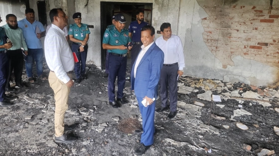 রাজশাহী সিটি করপোরেশনের প্রশাসক ও রাজশাহী বিভাগীয় কমিশনার ড. দেওয়ান মুহাম্মদ হুমায়ূন কবীর এবং রাজশাহী মেট্রোপলিটন পুলিশের (আরএমপি) নবনিযুক্ত কমিশনার মোহাম্মদ আবু সুফিয়ান ক্ষতিগ্রস্ত নগর ভবন পরিদর্শন করেছেন।