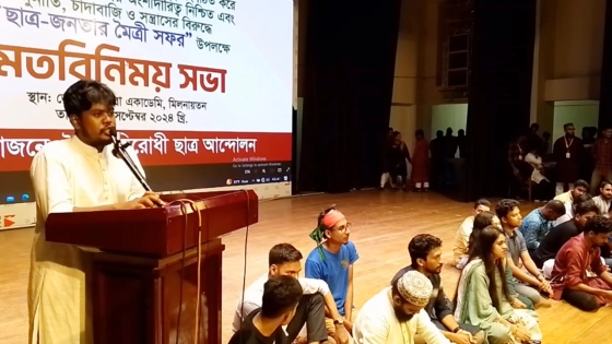 বৈষম্যবিরোধী ছাত্র আন্দোলনের সমন্বয়ক আসাদুল্লাহ আল গালিবের সভাপতিত্ব বক্তব্য রাখেন আশরাফুল আলম আলী, মোছাম্মৎ ছারা প্রমুখ।