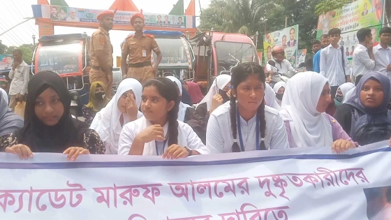 শরীয়তপুর সরকারি কলেজের বিএনসিসি ক্যাডেট মারুফ আলমের ওপর হামলার প্রতিবাদে সড়ক অবরোধ করে বিক্ষোভ করেন শিক্ষার্থীরা।