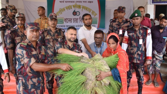 ব্রাহ্মণবাড়িয়ার কসবায় বন্যায় ক্ষতিগ্রস্ত কৃষকদের ধানের চারা দিয়েছে বর্ডার গার্ড বাংলাদেশ (বিজিবি)।