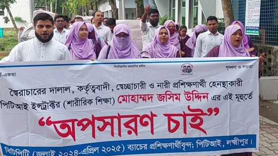 লক্ষ্মীপুরে প্রাথমিক শিক্ষক প্রশিক্ষণ ইনস্টিটিউটের (পিটিআই) শারীরিক শিক্ষা ইনস্ট্রাক্টর মো. জসিম উদ্দিনের অপসারণের দাবিতে বিক্ষোভ করেছেন মৌলিক প্রশিক্ষণ কর্মসূচির (বিটিপিটি) প্রশিক্ষণার্থীরা। অভিযুক্ত জসিমের বিরুদ্ধে অর্থ আত্মসাৎ, স্বেচ্ছাচারিতা ও নারী হেনস্তার অভিযোগ উঠেছে।