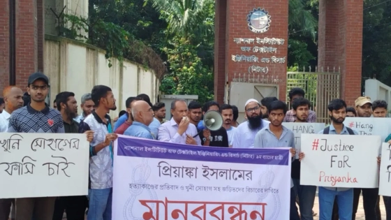 ন্যাশনাল ইনিস্টিউট অফ টেক্সটাইল ইঞ্জিনিয়ারিং রিসার্চের (নিটার) সাবেক শিক্ষার্থী প্রিয়াঙ্কা ইসলাম হত্যাকাণ্ডের বিচারের দাবিতে মানববন্ধন করেছে প্রতিষ্ঠানটির শিক্ষক ও শিক্ষার্থীরা।
