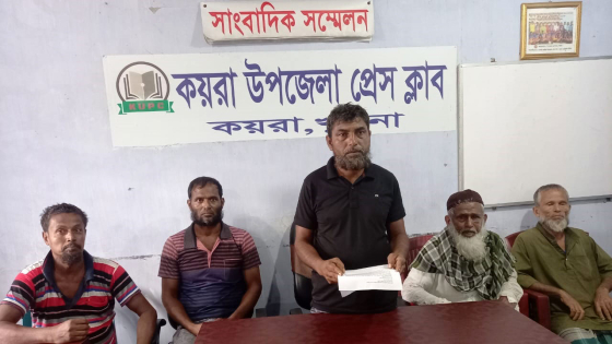 এ ব্যাপারে ভুক্তভোগী জমির মালিকরা শনিবার (৫ আগস্ট) দুপুর ১২টায় কয়রা উপজেলা প্রেসক্লাবে সংবাদ সম্মেলন করেছেন।