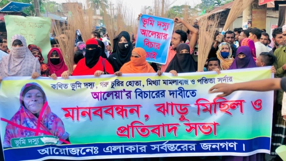 নোয়াখালীর সুবর্ণচরের মহিলা লীগের নেত্রী আলেয়ার বিচারের দাবিতে এলাকাবাসী মানববন্ধন, ঝাড়ু মিছিল ও প্রতিবাদ সমাবেশ করেছে।