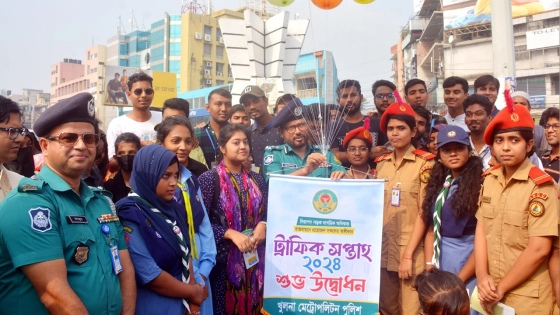 ‘নিরাপদ সড়ক নাগরিক অধিকার, বাস্তবায়নে প্রয়োজন সবার অঙ্গীকার’ এই প্রতিপাদ্য নিয়ে খুলনায় ট্রাফিক সপ্তাহ শুরু হয়েছে।