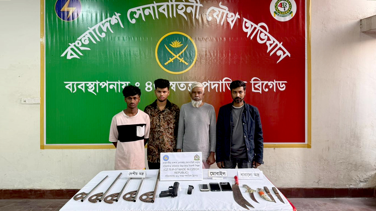 মঙ্গলবার (৫ নভেম্বর) ভোরে উপজেলার মদন ইউনিয়নের কদমতলী এলাকা থেকে তাদের গ্রেপ্তার করা হয়।