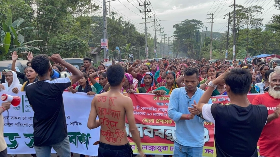 টানা ১৫ দিনের কর্মবিরতির অংশ হিসেবে সিলেটে বিক্ষোভ সমাবেশ করেছেন লাক্কাতুরাসহ বেশ কয়েকটি চা বাগানের সর্বস্তরের শ্রমিকরা। মঙ্গলবার (৫ নভেম্বর) বিকেল ৩টা থেকে সিলেট আন্তর্জাতিক ক্রিকেট স্টেডিয়ামের মূল ফটকের সামনে বিক্ষোভ সমাবেশে যোগ দিয়েছেন কয়েকশো চা শ্রমিক। এতে নিঃশর্তে বেতন-ভাতা পরিশোধ না করলে আরও তীব্র আন্দোলনের ডাক দেওয়া হবে বলে জানান শ্রমিকরা।