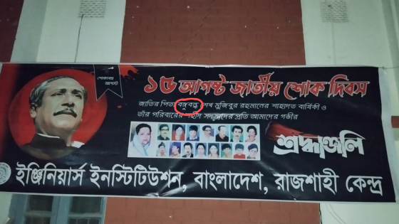 জানা গেছে, জাতির পিতার ৪৮তম শাহাদৎবার্ষিকী ও জাতীয় শোক দিবস উপলক্ষে দুই দিন আগে ‘ইঞ্জিনিয়ার্স ইনস্টিটিউশন বাংলাদেশ (আইইবি)’ রাজশাহী কর্তৃপক্ষ নিজেদের ভবনের দেয়ালে এবং রাজশাহী প্রকৌশল ও প্রযুক্তি বিশ্ববিদ্যালয় (রুয়েট) ক্যাম্পাসে দুটি ব্যানার সাঁটিয়ে দেয়। তাদের সেই ব্যানারে বঙ্গবন্ধু বানান ভুল রয়েছে।