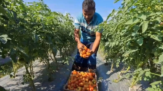 সরেজমিনে দেখা গেছে, জমিতে সারি সারি টমেটোর গাছে ফলন ধরেছে। কৃষকরা পরিচর্যায় ব্যস্ত। কেউ আবার বিক্রির জন্য গাছ থেকে টমেটো সংগ্রহ করছেন।
