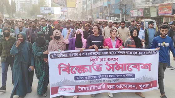 খুলনায় বিক্ষোভ সমাবেশ ও মিছিল করেছে বৈষম্যবিরোধী ছাত্র আন্দোলনের নেতাকর্মীরা।