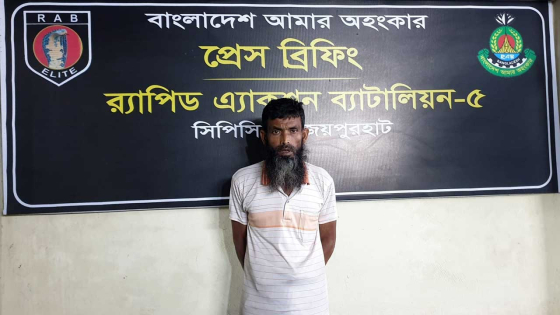 জয়পুরহাটে ডাকাতি ও হত্যা মামলায় মৃত্যুদণ্ডপ্রাপ্ত পলাতক আসামি আমিনুল ইসলাম ওরফে রিয়াদুলকে গ্রেপ্তার করেছেন জয়পুরহাট র্যাপিড অ্যাকশন ব্যাটালিয়নের (র্যাব) সদস্যরা।