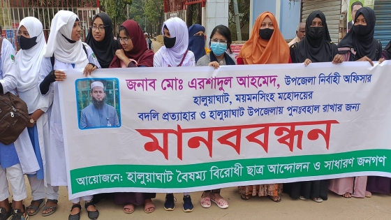 ময়মনসিংহের হালুয়াঘাট উপজেলা নির্বাহী কর্মকর্তা মো. এরশাদুল আহমেদের বদলি বাতিল ও পুনঃ বহাল রাখার দাবিতে হালুয়াঘাট উপজেলায় চলছে কমপ্লিট শাটডাউন।