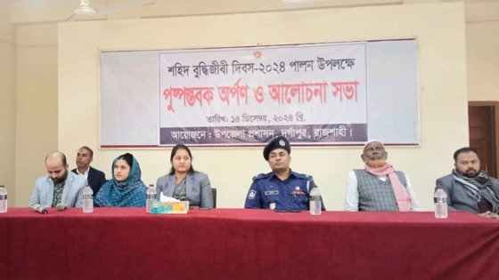 রাজশাহী দূর্গাপুরে যথাযথ মর্যাদায় পালিত হয়েছে শহীদ বুদ্ধিজীবী দিবস। এ উপলক্ষে গগনবাড়ীয়া বধ্যভূমি স্মৃতিস্তম্ভে পুষ্পস্তবক অর্পণ করে উপজেলা প্রশাসন, সরকারি, বেসরকারি প্রতিষ্ঠান, বিএনপির ও অঙ্গসংগঠন এবং শহীদ পরিবারের সদস্যসহ অন্যরা।