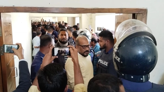 জানা গেছে, বেলা সাড়ে ১১টায় সুনামগঞ্জ জেলা আওয়ামী লীগের সহ-সভাপতি সাবেক পৌর মেয়র নাদের বখ্ত, জেলা স্বেচ্ছাসেবক লীগের সভাপতি সোয়েব আহমদ চৌধুরী, সাধারণ সম্পাদক জুবায়ের আহমদ অপু, জেলা আওয়ামী লীগের সদস্য শাহারুল আলম আফজল, ছাত্রলীগ কর্মী মুছিবুর রহমান আদালতে এসে উপস্থিত হন। এ সময় মেয়র নাদের বখতের সমর্থক এবং স্বজনরাও আদালত প্রাঙ্গণে ভিড় করেন। আদালতের বিচারক আত্মসমর্পণকারী সকলকে কারাগারে পাঠানোর আদেশ দিলে, আদালত প্রাঙ্গণে ‘জয় বাংলা’ স্লোগান তুলেন স্বজনরা। জয় বাংলা স্লোগান শুনে বিএনপিপন্থি আইনজীবীরা এর প্রতিবাদ জানান।