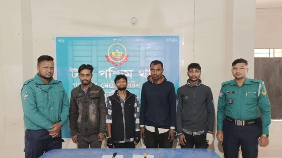 শনিবার (৫ জানুয়ারি) ভোরে টঙ্গী পশ্চিম থানার একটি বিশেষ দল এ অভিযান পরিচালনা করে। গ্রেপ্তার চারজন হলেন- মো. মারুফ (২২), নজরুল (২৫), হযরত আলী বাবু (৩২) এবং রফিকুল ইসলাম (৩৪)।