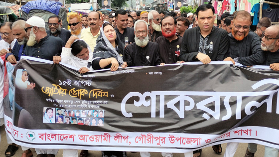 জাতির পিতা বঙ্গবন্ধু শেখ মুজিবুর রহমানের ৪৮তম শাহাদাতবার্ষিকী ও জাতীয় শোক দিবস উপলক্ষে ময়মনসিংহের গৌরীপুর পৌর শহরে শোক র্যালি বের হয়েছে।