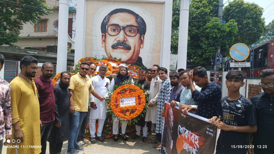 জাতীয় শোক দিবস উপলক্ষে মঙ্গলবার (১৫ আগস্ট) দলীয় নেতাকর্মীদের নিয়ে তিনি সকালে শহরের খুলনা রোড মোড়ে অবস্থিত বঙ্গবন্ধু শেখ মুজিবুর রহমানের প্রতিকৃতিতে পুষ্পস্তবক অর্পণ শেষে এসব কথা বলেন।