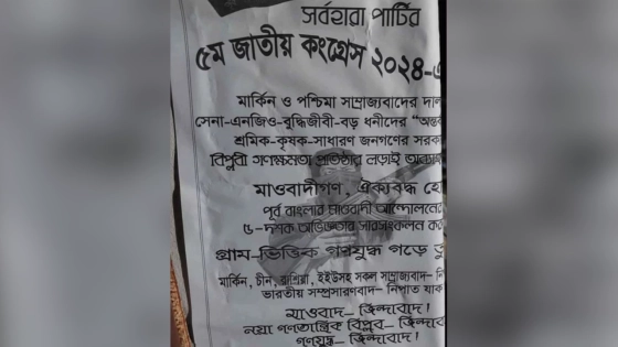 পোস্টারে লেখা, ‘সর্বহারা পার্টির জাতীয় কংগ্রেস ২০২৪’-এর ডাক, মার্কিন ও পশ্চিমা সাম্রাজ্যবাদের দালাল ও সেনা-এনজিও-বুদ্ধিজীবী-বড় ধনীদের অন্তর্বর্তী সরকার, শ্রমিক-কৃষক-সাধারণ জনগণের সরকার নয়, বিপ্লবী গণক্ষমতা প্রতিষ্ঠার লড়াই অব্যাহত রাখুন।’ মাওবাদীগণ, ঐক্যবদ্ধ হোন! পূর্ব বাংলার মাওবাদী আন্দোলনের ৫-দশক অভিজ্ঞতার সারসংকলন করুন! গ্রামভিত্তিক গণযুদ্ধ গড়ে তুলুন! মার্কিন, চীন, রাশিয়া, ইইউসহ সব সাম্রাজ্যবাদ নিপাত যাক! ভারতীয় সম্প্রসারণবাদ-নিপাত যাক! মাওবাদ-জিন্দাবাদ! নয়া গণতান্ত্রিক বিপ্লব-জিন্দাবাদ! গণযুদ্ধ জিন্দাবাদ! কেন্দ্রীয় কমিটি, পূর্ব বাংলার সর্বহারা পার্টি।